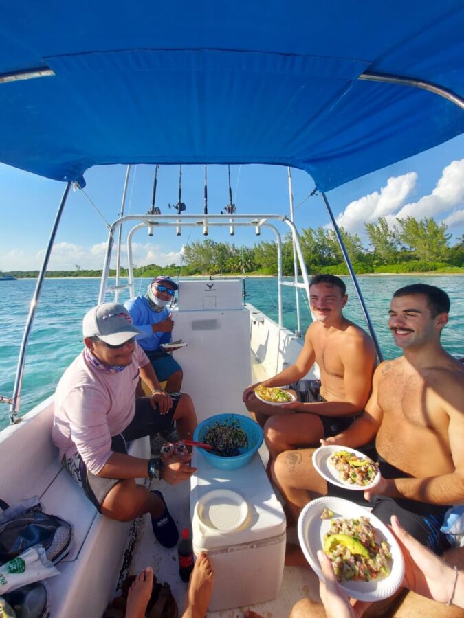 Enjoy with your family and friends a doy of fishing, snorkeling and ceviche with the catch oh the day while enjoying the views os the Mexican Caribbean.